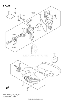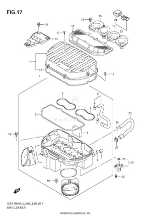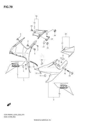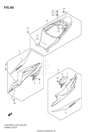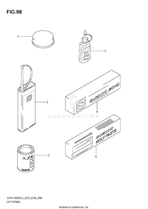 2ND AIR AIR CLEANER AIR INTAKE PIPE BATTERY CAM CHAIN CAM SHAFT - VALVE CLUTCH COWLING BODY CRANKCASE CRANKCASE COVER CRANKSHAFT CYLINDER HEAD CYLINDER HEAD COVER ELECTRICAL (GSX-R600L3 E03) ELECTRICAL (GSX-R600L3 E28) ELECTRICAL (GSX-R600L3 E33) EVAP SYSTEM (GSX-R600L3 E33) FOOTREST FRAME (GSX-R600L3 E03) FRAME (GSX-R600L3 E28) FRAME (GSX-R600L3 E33) FRAME COVER (AGQ) FRAME COVER (AGS,AGT) FRONT BRAKE HOSE FRONT CALIPER FRONT DAMPER FRONT FENDER (GSX-R600L3 E03) FRONT FENDER (GSX-R600L3 E28) FRONT FENDER (GSX-R600L3 E33) FRONT MASTER CYLINDER FRONT WHEEL FUEL PUMP FUEL TANK (GSX-R600L3 E03) FUEL TANK (GSX-R600L3 E28) FUEL TANK (GSX-R600L3 E33) FUEL TANK COVER (GSX-R600L3 E03) FUEL TANK COVER (GSX-R600L3 E28) FUEL TANK COVER (GSX-R600L3 E33) GASKET SET GEAR SHIFTING GENERATOR HANDLE LEVER HANDLE SWITCH HANDLEBAR HEADLAMP (GSX-R600L3 E03) HEADLAMP (GSX-R600L3 E28) HEADLAMP (GSX-R600L3 E33) INNER COVER LABEL (GSX-R600L3 E03) LABEL (GSX-R600L3 E28) LABEL (GSX-R600L3 E33) MUFFLER OIL COOLER OIL PAN - OIL PUMP OPTIONAL RADIATOR (GSX-R600L3 E03) RADIATOR (GSX-R600L3 E28) RADIATOR (GSX-R600L3 E33) RADIATOR HOSE REAR CALIPER REAR COMBINATION LAMP (GSX-R600L3 E03) REAR COMBINATION LAMP (GSX-R600L3 E28) REAR COMBINATION LAMP (GSX-R600L3 E33) REAR CUSHION LEVER (GSX-R600L3 E03) REAR CUSHION LEVER (GSX-R600L3 E28) REAR CUSHION LEVER (GSX-R600L3 E33) REAR FENDER (GSX-R600L3 E03) REAR FENDER (GSX-R600L3 E28) REAR FENDER (GSX-R600L3 E33) REAR MASTER CYLINDER REAR SWINGING ARM REAR WHEEL SEAT SEAT TAIL BOX (OPTIONAL) SIDE COWLING (AGQ) SIDE COWLING (AGS,AGT) SIGNAL GENERATOR SPEEDOMETER (GSX-R600L3 E03) SPEEDOMETER (GSX-R600L3 E28) SPEEDOMETER (GSX-R600L3 E33) STAND STARTER CLUTCH STARTING MOTOR STEERING STEM THROTTLE BODY (GSX-R600L3 E03) THROTTLE BODY (GSX-R600L3 E28) THROTTLE BODY (GSX-R600L3 E33) THROTTLE BODY HOSE/JOINT (GSX-R600L3 E03) THROTTLE BODY HOSE/JOINT (GSX-R600L3 E28) THROTTLE BODY HOSE/JOINT (GSX-R600L3 E33) TRANSMISSION TURNSIGNAL LAMP (GSX-R600L3 E03) TURNSIGNAL LAMP (GSX-R600L3 E28) TURNSIGNAL LAMP (GSX-R600L3 E33) UNDER COWLING WATER PUMP WIRING HARNESS (GSX-R600L3 E03) WIRING HARNESS (GSX-R600L3 E28) WIRING HARNESS (GSX-R600L3 E33)