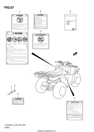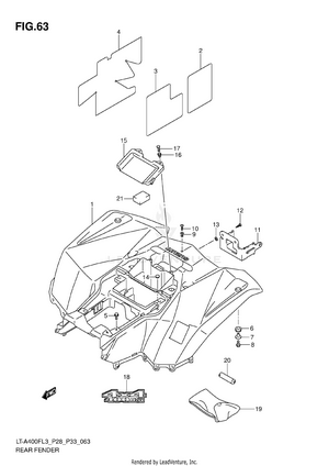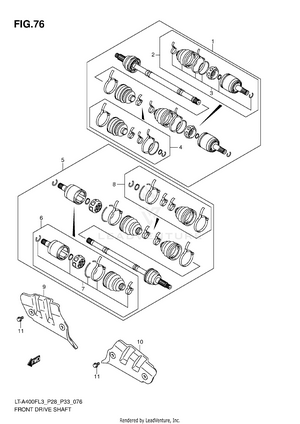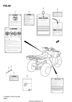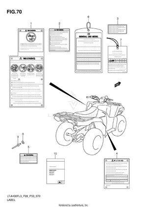 AIR CLEANER BATTERY BELT COOLING DUCT CAM CHAIN CAM SHAFT/VALVE CARRIER (LT-A400FL3 P28) CARRIER (LT-A400FL3 P33) CARRIER (LT-A400FZL3 P28) CARRIER (LT-A400FZL3 P33) COOLING FAN CRANK BALANCER CRANKCASE CRANKCASE COVER CRANKSHAFT CYLINDER CYLINDER HEAD ELECTRICAL FINAL BEVEL GEAR (FRONT) FINAL BEVEL GEAR (REAR) FOOTREST FRAME FRONT BRAKE HOSE FRONT CALIPER FRONT DRIVE SHAFT FRONT FENDER (LT-A400FL3 P28) FRONT FENDER (LT-A400FL3 P33) FRONT FENDER (LT-A400FZL3 P28) FRONT FENDER (LT-A400FZL3 P33) FRONT LAMP HOUSING FRONT MASTER CYLINDER FRONT WHEEL FUEL PUMP FUEL TANK GASKET SET GEAR SHIFTING HANDLE LEVER HANDLEBAR HEADLAMP (LT-A400FL3 P28) HEADLAMP (LT-A400FL3 P33) HEADLAMP (LT-A400FZL3 P28) HEADLAMP (LT-A400FZL3 P33) LABEL (LT-A400FL3 P28) LABEL (LT-A400FL3 P33) LABEL (LT-A400FZL3 P28) LABEL (LT-A400FZL3 P33) LEFT REAR WHEEL MADGUARD MAGNETO MUFFLER OIL COOLER OIL PUMP OPTIONAL REAR BRAKE REAR COMBINATION LAMP (LT-A400FL3 P28) REAR COMBINATION LAMP (LT-A400FL3 P33) REAR COMBINATION LAMP (LT-A400FZL3 P28) REAR COMBINATION LAMP (LT-A400FZL3 P33) REAR FENDER (LT-A400FL3 P28) REAR FENDER (LT-A400FL3 P33) REAR FENDER (LT-A400FZL3 P28) REAR FENDER (LT-A400FZL3 P33) REAR SWINGINGARM RECOIL COVER RIGHT REAR WHEEL SEAT SECONDARY DRIVE SHIFT LEVER SPEEDOMETER (LT-A400FL3 P28) SPEEDOMETER (LT-A400FL3 P33) SPEEDOMETER (LT-A400FZL3 P28) SPEEDOMETER (LT-A400FZL3 P33) STARTER CLUTCH STARTING MOTOR STEERING KNUCKLE STEERING SHAFT SUSPENSION ARM THROTTLE BODY TRANSMISSION (1) TRANSMISSION (2) WIRING HARNESS (LT-A400FL3 P28) WIRING HARNESS (LT-A400FL3 P33) WIRING HARNESS (LT-A400FZL3 P28) WIRING HARNESS (LT-A400FZL3 P33)