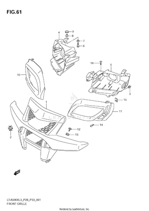 AIR CLEANER BATTERY CAM CHAIN CAM SHAFT/VALVE CARRIER (LT-A500XL3 E28) CARRIER (LT-A500XL3 E33) CARRIER (LT-A500XZL3 E28) CARRIER (LT-A500XZL3 E33) COOLING DUCT CRANK BALANCER CRANKCASE CRANKCASE COVER CRANKSHAFT CYLINDER CYLINDER HEAD ELECTRICAL FINAL BEVEL GEAR (FRONT) FINAL BEVEL GEAR (REAR) FOOTREST FRAME FRONT BOX FRONT BRAKE HOSE FRONT CALIPER FRONT DRIVE SHAFT FRONT FENDER (LT-A500XL3 E28) FRONT FENDER (LT-A500XL3 E33) FRONT FENDER (LT-A500XZL3 E28) FRONT FENDER (LT-A500XZL3 E33) FRONT GRILLE (LT-A500XL3 E28) FRONT GRILLE (LT-A500XL3 E33) FRONT GRILLE (LT-A500XZL3 E28) FRONT GRILLE (LT-A500XZL3 E33) FRONT MASTER CYLINDER FRONT SUSPENSION ARM FRONT WHEEL (LT-A500XL3 E28) FRONT WHEEL (LT-A500XL3 E33) FRONT WHEEL (LT-A500XZL3 E28) FRONT WHEEL (LT-A500XZL3 E33) FUEL PUMP FUEL TANK GASKET SET GEAR SHIFTING HANDLE BAR HANDLE COVER (LT-A500XL3 E28) HANDLE COVER (LT-A500XL3 E33) HANDLE COVER (LT-A500XZL3 E28) HANDLE COVER (LT-A500XZL3 E33) HANDLE LEVER HEADLAMP (LT-A500XL3 E28) HEADLAMP (LT-A500XL3 E33) HEADLAMP (LT-A500XZL3 E28) HEADLAMP (LT-A500XZL3 E33) LABEL (LT-A500XL3 E28) LABEL (LT-A500XL3 E33) LABEL (LT-A500XZL3 E28) LABEL (LT-A500XZL3 E33) LEFT REAR WHEEL (LT-A500XL3 E28) LEFT REAR WHEEL (LT-A500XL3 E33) LEFT REAR WHEEL (LT-A500XZL3 E28) LEFT REAR WHEEL (LT-A500XZL3 E33) MAGNETO MUDGUARD MUFFLER OIL PUMP OPTIONAL RADIATOR (LT-A500XL3 E28) RADIATOR (LT-A500XL3 E33) RADIATOR (LT-A500XZL3 E28) RADIATOR (LT-A500XZL3 E33) RADIATOR HOSE REAR BOX REAR BRAKE REAR BRAKE ASSY REAR COMBINATION LAMP (LT-A500XL3 E28) REAR COMBINATION LAMP (LT-A500XL3 E33) REAR COMBINATION LAMP (LT-A500XZL3 E28) REAR COMBINATION LAMP (LT-A500XZL3 E33) REAR DRIVE SHAFT REAR FENDER (LT-A500XL3 E28) REAR FENDER (LT-A500XL3 E33) REAR FENDER (LT-A500XZL3 E28) REAR FENDER (LT-A500XZL3 E33) REAR SHOCK ABSORBER REAR SUSPENSION ARM RECOIL COVER RIGHT REAR WHEEL (LT-A500XL3 E28) RIGHT REAR WHEEL (LT-A500XL3 E33) RIGHT REAR WHEEL (LT-A500XZL3 E28) RIGHT REAR WHEEL (LT-A500XZL3 E33) SEAT SECONDARY DRIVE SHIFT LEVER SPEEDOMETER (LT-A500XL3 E28) SPEEDOMETER (LT-A500XL3 E33) SPEEDOMETER (LT-A500XZL3 E28) SPEEDOMETER (LT-A500XZL3 E33) STARTER CLUTCH STARTING MOTOR STEERING KNUCKLE STEERING SHAFT THROTTLE BODY TRANSMISSION (1) TRANSMISSION (2) WATER PUMP WIRING HARNESS (LT-A500XL3 E28) WIRING HARNESS (LT-A500XL3 E33) WIRING HARNESS (LT-A500XZL3 E28) WIRING HARNESS (LT-A500XZL3 E33)