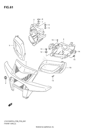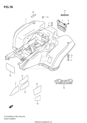 AIR CLEANER BATTERY CAM CHAIN CAM SHAFT/VALVE CARRIER (LT-A750XPL3 P28) CARRIER (LT-A750XPL3 P33) CARRIER (LT-A750XPZL3 P28) CARRIER (LT-A750XPZL3 P33) COOLING DUCT CRANK BALANCER CRANKCASE CRANKCASE COVER CRANKSHAFT CYLINDER CYLINDER HEAD CYLINDER HEAD COVER ELECTRICAL FINAL BEVEL GEAR (FRONT) FINAL BEVEL GEAR (REAR) FOOTREST FRAME FRONT BOX FRONT BRAKE HOSE FRONT CALIPER FRONT DRIVE SHAFT FRONT FENDER (LT-A750XPL3 P28) FRONT FENDER (LT-A750XPL3 P33) FRONT FENDER (LT-A750XPZL3 P28) FRONT FENDER (LT-A750XPZL3 P33) FRONT GRILLE (LT-A750XPL3 P28) FRONT GRILLE (LT-A750XPL3 P33) FRONT GRILLE (LT-A750XPZL3 P28) FRONT GRILLE (LT-A750XPZL3 P33) FRONT MASTER CYLINDER FRONT SUSPENSION ARM FRONT WHEEL (LT-A750XPL3 P28) FRONT WHEEL (LT-A750XPL3 P33) FRONT WHEEL (LT-A750XPZL3 P28) FRONT WHEEL (LT-A750XPZL3 P33) FUEL PUMP FUEL TANK GASKET SET GEAR SHIFTING HANDLE COVER (LT-A750XPL3 P28) HANDLE COVER (LT-A750XPL3 P33) HANDLE COVER (LT-A750XPZL3 P28) HANDLE COVER (LT-A750XPZL3 P33) HANDLE LEVER HANDLEBAR HEADLAMP (LT-A750XPL3 P28) HEADLAMP (LT-A750XPL3 P33) HEADLAMP (LT-A750XPZL3 P28) HEADLAMP (LT-A750XPZL3 P33) LABEL (LT-A750XPL3 P28) LABEL (LT-A750XPL3 P33) LABEL (LT-A750XPZL3 P28) LABEL (LT-A750XPZL3 P33) LEFT REAR WHEEL (LT-A750XPL3 P28) LEFT REAR WHEEL (LT-A750XPL3 P33) LEFT REAR WHEEL (LT-A750XPZL3 P28) LEFT REAR WHEEL (LT-A750XPZL3 P33) MAGNETO MUDGUARD MUFFLER OIL PUMP OPTIONAL RADIATOR (LT-A750XPL3 P28) RADIATOR (LT-A750XPL3 P33) RADIATOR (LT-A750XPZL3 P28) RADIATOR (LT-A750XPZL3 P33) RADIATOR HOSE REAR BOX REAR BRAKE REAR BRAKE ASSY REAR COMBINATION LAMP (LT-A750XPL3 P28) REAR COMBINATION LAMP (LT-A750XPL3 P33) REAR COMBINATION LAMP (LT-A750XPZL3 P28) REAR COMBINATION LAMP (LT-A750XPZL3 P33) REAR DRIVE SHAFT REAR FENDER (LT-A750XPL3 P28) REAR FENDER (LT-A750XPL3 P33) REAR FENDER (LT-A750XPZL3 P28) REAR FENDER (LT-A750XPZL3 P33) REAR SHOCK ABSORBER REAR SUSPENSION ARM RECOIL COVER RIGHT REAR WHEEL (LT-A750XPL3 P28) RIGHT REAR WHEEL (LT-A750XPL3 P33) RIGHT REAR WHEEL (LT-A750XPZL3 P28) RIGHT REAR WHEEL (LT-A750XPZL3 P33) SEAT SECONDARY DRIVE SHIFT LEVER SPEEDOMETER (LT-A750XPL3 P28) SPEEDOMETER (LT-A750XPL3 P33) SPEEDOMETER (LT-A750XPZL3 P28) SPEEDOMETER (LT-A750XPZL3 P33) STARTER CLUTCH STARTING MOTOR STEERING KNUCKLE STEERING SHAFT THROTTLE BODY TRANSMISSION (1) TRANSMISSION (2) WATER PUMP WIRING HARNESS (LT-A750XPL3 P28) WIRING HARNESS (LT-A750XPL3 P33) WIRING HARNESS (LT-A750XPZL3 P28) WIRING HARNESS (LT-A750XPZL3 P33)