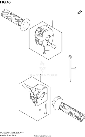 AIR CLEANER BATTERY CAM CHAIN CAMSHAFT/VALVE CARRIER (DL1000AL4 E03) CARRIER (DL1000AL4 E28) CARRIER (DL1000AL4 E33) CENTER STAND SET (OPTIONAL) CLUTCH CLUTCH MASTER CYLINDER COWLING BODY COWLING INSTALLATION PARTS CRANKCASE CRANKCASE COVER CRANKSHAFT CYLINDER CYLINDER HEAD (FRONT) CYLINDER HEAD (REAR) ELECTRICAL (DL1000AL4 E03) ELECTRICAL (DL1000AL4 E28) ELECTRICAL (DL1000AL4 E33) EVAP SYSTEM (DL1000AL4 E33) FOOTREST FRAME FRAME COVER FRONT BRACKET FRONT BRAKE HOSE FRONT CALIPER FRONT FENDER FRONT FORK DAMPER FRONT MASTER CYLINDER FRONT WHEEL FUEL PUMP FUEL TANK (DL1000AL4 E03) FUEL TANK (DL1000AL4 E28) FUEL TANK (DL1000AL4 E33) FUEL TANK COVER GASKET SET GEAR SHIFTING GRIP HEATER SET (OPTIONAL) HANDLE LEVER HANDLE SWITCH HANDLEBAR HEADLAMP HIGH SEAT (OPTIONAL) HOLDER (DL1000AL4 E03) HOLDER (DL1000AL4 E28) HOLDER (DL1000AL4 E33) HYDRAULIC UNIT KNUCKLE COVER SET (OPTIONAL) LABEL (DL1000AL4 E03) LABEL (DL1000AL4 E28) LABEL (DL1000AL4 E33) LOCK SET (DL1000AL4 E03) LOCK SET (DL1000AL4 E28) LOCK SET (DL1000AL4 E33) LOCK SET (FOR PANNIR CASE) (DL1000AL4 E03) LOCK SET (FOR PANNIR CASE) (DL1000AL4 E28) LOCK SET (FOR PANNIR CASE) (DL1000AL4 E33) LOW SEAT (OPTIONAL) MAGNETO MUFFLER OIL PUMP OPTIONAL RADIATOR RADIATOR HOSE REAR CALIPER REAR COMBINATION LAMP REAR CUSHION LEVER REAR FENDER REAR MASTER CYLINDER REAR SWINGINGARM REAR WHEEL SEAT SIDE CASE BRACKET SET (OPTIONAL) SIDE CASE SET (OPTIONAL) SPEEDOMETER (DL1000AL4 E03) SPEEDOMETER (DL1000AL4 E28) SPEEDOMETER (DL1000AL4 E33) STAND STARTER CLUTCH STARTING MOTOR STEERING STEM THROTTLE BODY (DL1000AL4 E03) THROTTLE BODY (DL1000AL4 E28) THROTTLE BODY (DL1000AL4 E33) TOP CASE BRACKET SET (OPTIONAL) TOP CASE SET (OPTIONAL) TRANSMISSION TURNSIGNAL LAMP UNDER COWLING SET (OPTIONAL) WATER PUMP WIND SCREEN (OPTIONAL) WIRING HARNESS (DL1000AL4 E03) WIRING HARNESS (DL1000AL4 E28) WIRING HARNESS (DL1000AL4 E33)