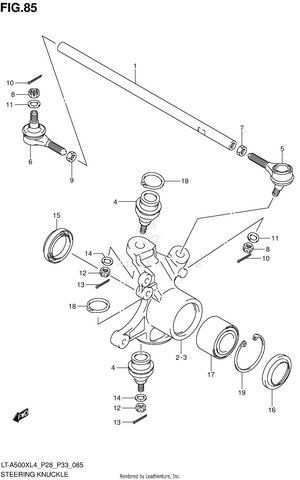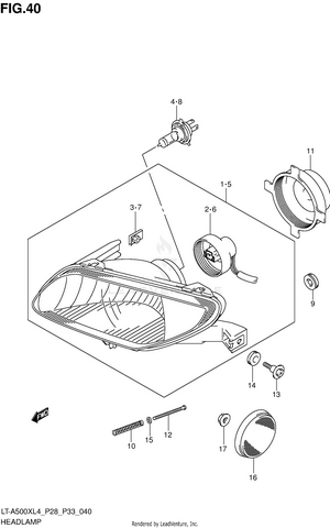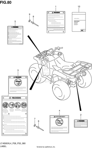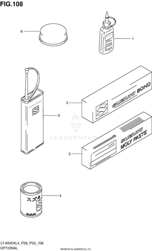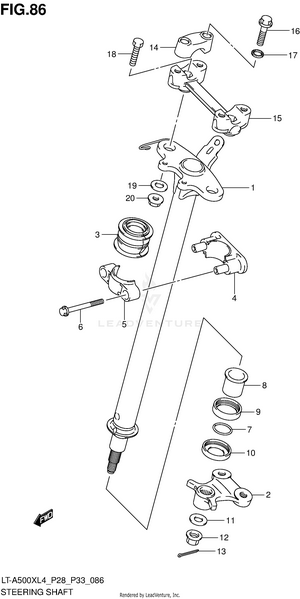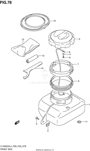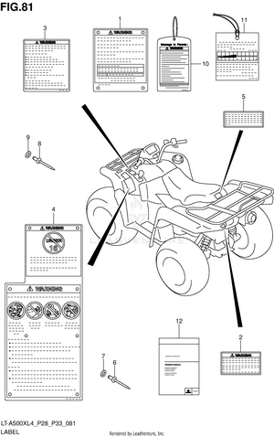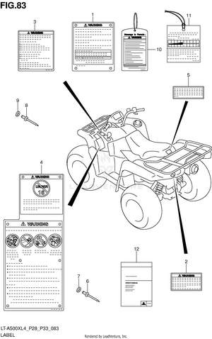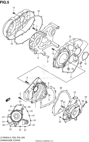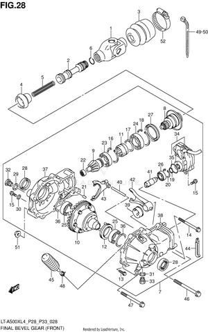 AIR CLEANER BATTERY BELT COOLING DUCT BRAKE PEDAL CAM CHAIN CAMSHAFT/VALVE CARRIER (LT-A500XL4 P28) CARRIER (LT-A500XL4 P33) CARRIER (LT-A500XZL4 P28) CARRIER (LT-A500XZL4 P33) CRANK BALANCER CRANKCASE CRANKCASE COVER CRANKSHAFT CYLINDER CYLINDER HEAD ELECTRICAL FINAL BEVEL GEAR (FRONT) FINAL BEVEL GEAR (REAR) FOOTREST FRAME FRONT BOX FRONT BRAKE HOSE FRONT CALIPER FRONT DRIVE SHAFT FRONT FENDER (LT-A500XL4 P28) FRONT FENDER (LT-A500XL4 P33) FRONT FENDER (LT-A500XZL4 P28) FRONT FENDER (LT-A500XZL4 P33) FRONT GRILLE (LT-A500XL4 P28) FRONT GRILLE (LT-A500XL4 P33) FRONT GRILLE (LT-A500XZL4 P28) FRONT GRILLE (LT-A500XZL4 P33) FRONT MASTER CYLINDER FRONT SUSPENSION ARM FRONT WHEEL (LT-A500XL4 P28) FRONT WHEEL (LT-A500XL4 P33) FRONT WHEEL (LT-A500XZL4 P28) FRONT WHEEL (LT-A500XZL4 P33) FUEL PUMP FUEL TANK GASKET SET GEAR SHIFTING HANDLE COVER (LT-A500XL4 P28) HANDLE COVER (LT-A500XL4 P33) HANDLE COVER (LT-A500XZL4 P28) HANDLE COVER (LT-A500XZL4 P33) HANDLE LEVER HANDLEBAR HEADLAMP (LT-A500XL4 P28) HEADLAMP (LT-A500XL4 P33) HEADLAMP (LT-A500XZL4 P28) HEADLAMP (LT-A500XZL4 P33) LABEL (LT-A500XL4 P28) LABEL (LT-A500XL4 P33) LABEL (LT-A500XZL4 P28) LABEL (LT-A500XZL4 P33) LH REAR WHEEL (LT-A500XL4 P28) LH REAR WHEEL (LT-A500XL4 P33) LH REAR WHEEL (LT-A500XZL4 P28) LH REAR WHEEL (LT-A500XZL4 P33) MAGNETO MUDGUARD MUFFLER OIL PUMP OPTIONAL RADIATOR (LT-A500XL4 P28) RADIATOR (LT-A500XL4 P33) RADIATOR (LT-A500XZL4 P28) RADIATOR (LT-A500XZL4 P33) RADIATOR HOSE REAR BOX REAR BRAKE REAR COMBINATION LAMP (LT-A500XL4 P28) REAR COMBINATION LAMP (LT-A500XL4 P33) REAR COMBINATION LAMP (LT-A500XZL4 P28) REAR COMBINATION LAMP (LT-A500XZL4 P33) REAR DRIVE SHAFT REAR FENDER (LT-A500XL4 P28) REAR FENDER (LT-A500XL4 P33) REAR FENDER (LT-A500XZL4 P28) REAR FENDER (LT-A500XZL4 P33) REAR SHOCK ABSORBER REAR SUSPENSION ARM RECOIL COVER RH REAR WHEEL (LT-A500XL4 P28) RH REAR WHEEL (LT-A500XL4 P33) RH REAR WHEEL (LT-A500XZL4 P28) RH REAR WHEEL (LT-A500XZL4 P33) SEAT SECONDARY DRIVE SHIFT LEVER SPEEDOMETER (LT-A500XL4 P28) SPEEDOMETER (LT-A500XL4 P33) SPEEDOMETER (LT-A500XZL4 P28) SPEEDOMETER (LT-A500XZL4 P33) STARTER CLUTCH STARTING MOTOR STEERING KNUCKLE STEERING SHAFT THROTTLE BODY TRANSMISSION (1) TRANSMISSION (2) WATER PUMP WIRING HARNESS (LT-A500XL4 P28) WIRING HARNESS (LT-A500XL4 P33) WIRING HARNESS (LT-A500XZL4 P28) WIRING HARNESS (LT-A500XZL4 P33)
