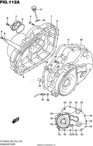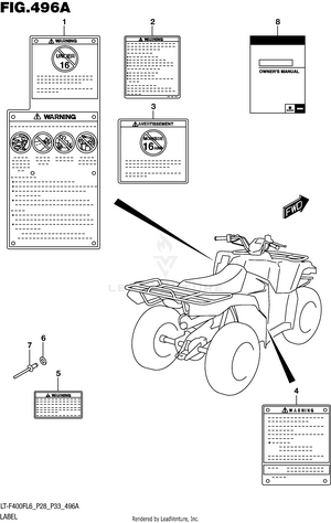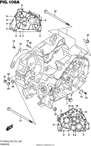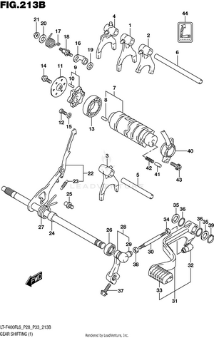 2ND AIR (LT-F400FL6 P28) 2ND AIR (LT-F400FL6 P33) AIR CLEANER (LT-F400FL6 P28) AIR CLEANER (LT-F400FL6 P33) BATTERY (LT-F400FL6 P28) BATTERY (LT-F400FL6 P33) CAM CHAIN CAMSHAFT/VALVE CARRIER (LT-F400FL6 P28) CARRIER (LT-F400FL6 P33) CLUTCH COOLING FAN CRANK BALANCER CRANKCASE CRANKCASE COVER CRANKSHAFT CYLINDER CYLINDER HEAD (LT-F400FL6 P28) CYLINDER HEAD (LT-F400FL6 P33) ELECTRICAL (LT-F400FL6 P28) ELECTRICAL (LT-F400FL6 P33) FINAL BEVEL GEAR (FRONT) (LT-F400FL6 P28) FINAL BEVEL GEAR (FRONT) (LT-F400FL6 P33) FINAL BEVEL GEAR (REAR) FOOTREST (LT-F400FL6 P28) FOOTREST (LT-F400FL6 P33) FRAME FRONT BRAKE HOSE FRONT CALIPER FRONT DRIVE SHAFT FRONT FENDER (LT-F400FL6 P28) FRONT FENDER (LT-F400FL6 P33) FRONT MASTER CYLINDER FRONT WHEEL FUEL PUMP FUEL TANK GASKET SET GEAR SHIFTING (1) (LT-F400FL6 P28) GEAR SHIFTING (1) (LT-F400FL6 P33) GEAR SHIFTING (2) HANDLE LEVER HANDLEBAR HEADLAMP (LT-F400FL6 P28) HEADLAMP (LT-F400FL6 P33) HEADLAMP HOUSING LABEL (LT-F400FL6 P28) LABEL (LT-F400FL6 P33) LH REAR WHEEL MAGNETO MUDGUARD (LT-F400FL6 P28) MUDGUARD (LT-F400FL6 P33) MUFFLER (LT-F400FL6 P28) MUFFLER (LT-F400FL6 P33) OIL COOLER (LT-F400FL6 P28) OIL COOLER (LT-F400FL6 P33) OIL PUMP OPTIONAL REAR BRAKE REAR COMBINATION LAMP (LT-F400FL6 P28) REAR COMBINATION LAMP (LT-F400FL6 P33) REAR FENDER REAR SWINGINGARM (LT-F400FL6 P28) REAR SWINGINGARM (LT-F400FL6 P33) RECOIL COVER RECOIL STARTER RH REAR WHEEL SEAT (LT-F400FL6 P28) SEAT (LT-F400FL6 P33) SECONDARY DRIVE (LT-F400FL6 P28) SECONDARY DRIVE (LT-F400FL6 P33) SHIFT LEVER (LT-F400FL6 P28) SHIFT LEVER (LT-F400FL6 P33) SPEEDOMETER (LT-F400FL6 P28) SPEEDOMETER (LT-F400FL6 P33) STARTER CLUTCH STARTING MOTOR STEERING KNUCKLE (LT-F400FL6 P28) STEERING KNUCKLE (LT-F400FL6 P33) STEERING SHAFT SUSPENSION ARM (LT-F400FL6 P28) SUSPENSION ARM (LT-F400FL6 P33) THROTTLE BODY TRANSMISSION (1) TRANSMISSION (2) WIRING HARNESS (LT-F400FL6 P28) WIRING HARNESS (LT-F400FL6 P33)