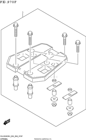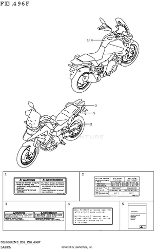 2ND AIR AIR CLEANER BATTERY BODY ELECTRICAL (DL1050RC) BODY ELECTRICAL (DL1050RQ) CAM CHAIN CAMSHAFT/VALVE CARRIER CLUTCH CLUTCH MASTER CYLINDER COWLING BODY CRANKCASE CRANKCASE (2) (DL1050RC) CRANKCASE (2) (DL1050RQ) CRANKCASE COVER CRANKSHAFT CYLINDER CYLINDER HEAD (FRONT) (DL1050RC) CYLINDER HEAD (FRONT) (DL1050RQ) CYLINDER HEAD (REAR) ELECTRICAL EVAP SYSTEM FOOTREST FRAME FRAME COVER (DL1050RC) FRAME COVER (DL1050RQ) FRONT BRACKET FRONT BRAKE HOSE (DL1050RC) FRONT BRAKE HOSE (DL1050RQ) FRONT BUMPER (DL1050RC) FRONT CALIPER FRONT FENDER FRONT FORK DAMPER FRONT MASTER CYLINDER FRONT WHEEL (DL1050RC) FRONT WHEEL (DL1050RQ) FUEL PUMP FUEL TANK (DL1050RC) FUEL TANK (DL1050RQ) FUEL TANK COVER GASKET SET GEAR SHIFTING HANDLE LEVER (DL1050RC) HANDLE LEVER (DL1050RQ) HANDLE SWITCH (DL1050RC) HANDLE SWITCH (DL1050RQ) HANDLEBAR (DL1050RC) HANDLEBAR (DL1050RQ) HEADLAMP HOLDER HYDRAULIC UNIT (DL1050RC) HYDRAULIC UNIT (DL1050RQ) KNUCKLE COVER (DL1050RC) LABEL (E03) LABEL (E28) LABEL (E33) LOCK SET LOCK SET (SEE NOTE 1) MAGNETO MUFFLER OIL COOLER OIL PUMP OPTIONAL (DL1050RQ) 970B OPTIONAL (DL1050RQ) 970D OPTIONAL (DL1050RQ) 970J OPTIONAL (DL1050RQ)(SEE NOTE 1) OPTIONAL 970C OPTIONAL 970E OPTIONAL 970F OPTIONAL 970G OPTIONAL 970H RADIATOR RADIATOR HOSE REAR CALIPER REAR COMBINATION LAMP (DL1050RC) REAR COMBINATION LAMP (DL1050RQ) REAR CUSHION LEVER REAR FENDER (DL1050RC) REAR FENDER (DL1050RQ) REAR MASTER CYLINDER (DL1050RC) REAR MASTER CYLINDER (DL1050RQ) REAR SWINGINGARM REAR WHEEL (DL1050RC) REAR WHEEL (DL1050RQ) SEAT (DL1050RC) SEAT (DL1050RQ) SIDE COVER (DL1050RC) SIDE COVER (DL1050RQ) SPEEDOMETER (DL1050RC:E03,E33) SPEEDOMETER (DL1050RC:E28) SPEEDOMETER (DL1050RQ) STAND (DL1050RC) STAND (DL1050RQ) STARTER CLUTCH STARTING MOTOR STEERING STEM THROTTLE BODY TRANSMISSION TURNSIGNAL LAMP (DL1050RC) TURNSIGNAL LAMP (DL1050RQ) WATER PUMP WINDSCREEN (DL1050RC) WINDSCREEN (DL1050RQ) WIRING HARNESS (DL1050RC) WIRING HARNESS (DL1050RQ)