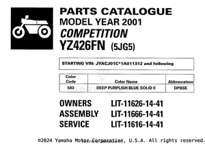 2001 Yamaha YZ426F OEM Parts