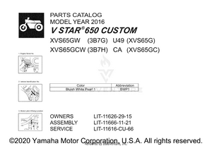 2016 Yamaha V STAR 650 CUSTOM - XVS65GW OEM Parts