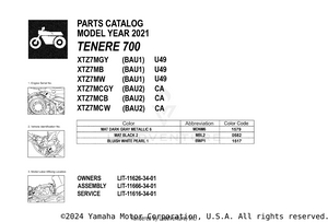 2021 Yamaha TENERE 700 OEM Parts