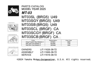 2025 Yamaha MT03 OEM Parts