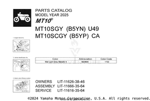 2025 Yamaha MT10 OEM Parts