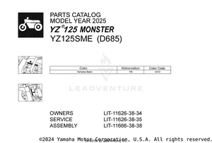 2025 Yamaha YZ125 MONSTER OEM Parts