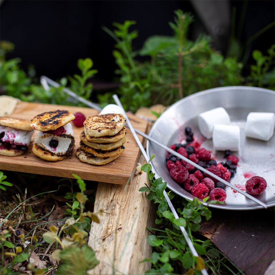 Learn MoreUp your campfire cooking game with the Primus Skewers. These flat metal skewers feature a sharp point to penetrate any food while a large flat side make rotating and resting these utensils a breeze.