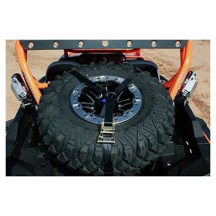 Learn MoreFully adjustable ratcheting spare tire tie-down allows you to mount any size spare tire to the bed of your UTV, truck, jeep, or rock crawler.