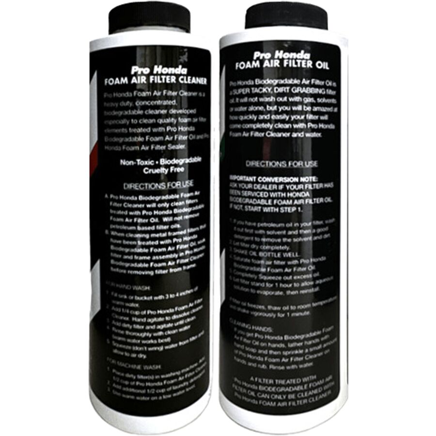 The Pro Honda (No-Toil) Air Filter Oil Kit is a three-piece kit containing Honda Biodegradable Filter Oil, Honda Air Filter Cleaner and Honda Foam Air Filter Sealer.