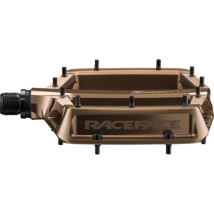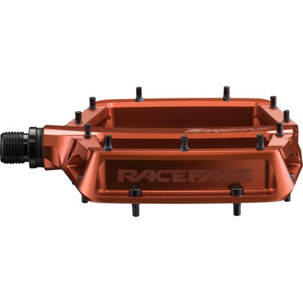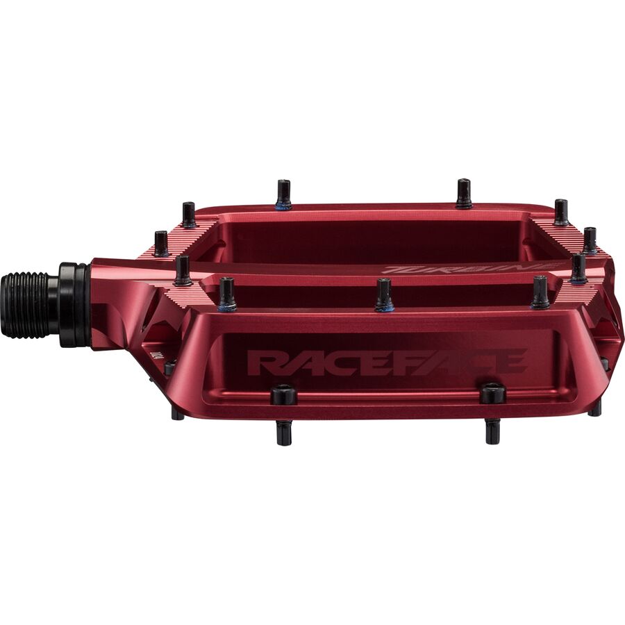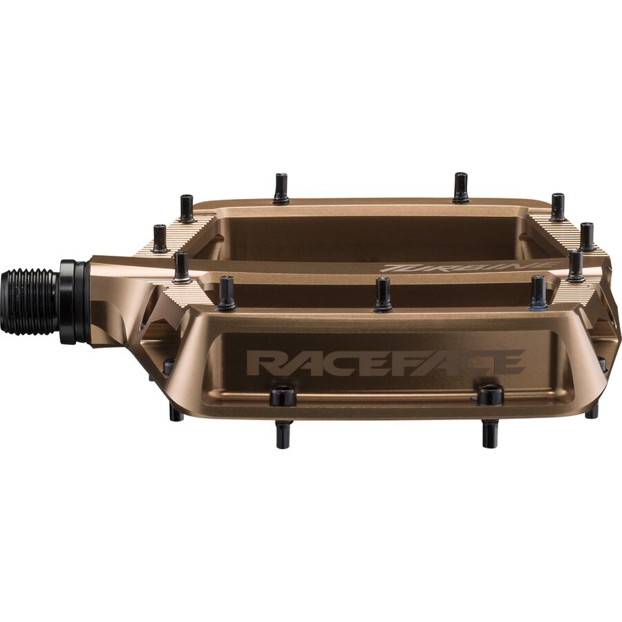When the terrain demands total trust in your pedals, we ride with the Race Face Turbine. Designed around full concavity front-to-back and inboard-to-outboard, this flat pedal cradles our shoes into the platform for a connected feel that stays solid over high-speed hits, side-loading compressions, and sketchy descents.