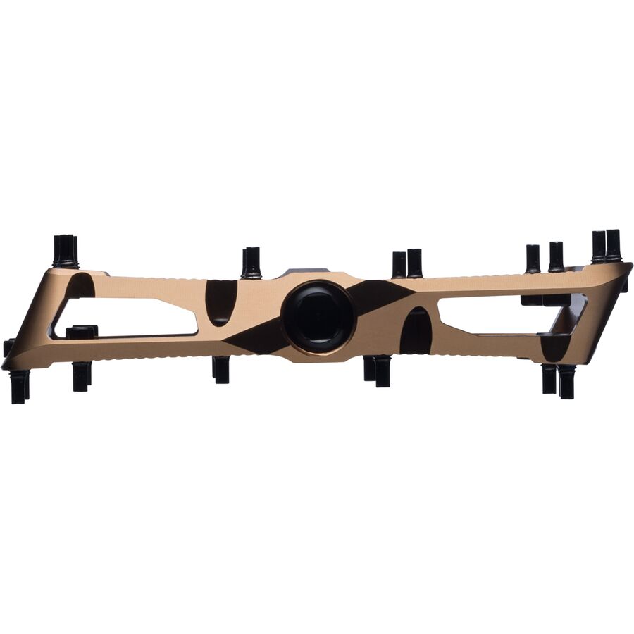 With an asymmetric platform that mirrors our foot shapewider at the front, narrower at the backthe Turbine gives us maximum pin contact, better clearance, and a larger usable surface without crowding the crank. No bearing bulge means a flatter, more centered foot placement and improved ergonomics for long days in the saddle.