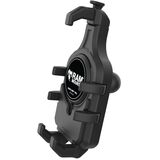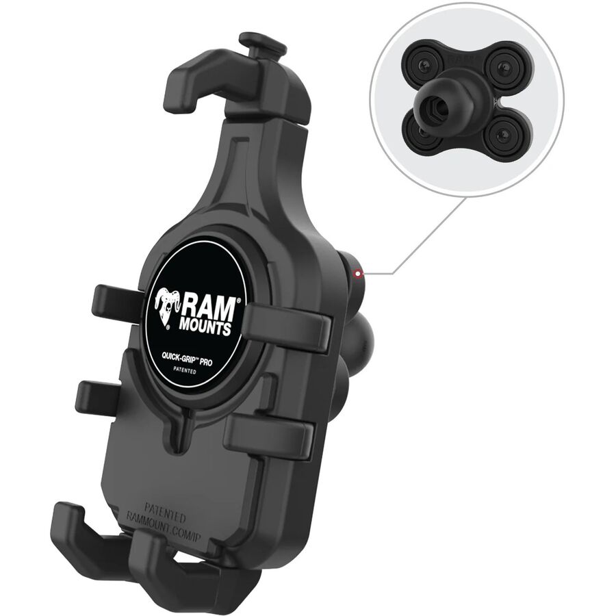 Learn MoreThe RAM Quick-Grip Pro Phone Holder is the next evolution of the RAM Quick-Grip series. Re-designed with a new, sleek look and integrated rubber side arms to provide a secure, no-slip hold on your phone. This phone holder features an integrated cavity for an Apple MagSafe puck, allowing you to turn the phone holder into a wireless charging solution. Not interested in charging? No problem! The included anti-slip cover ensures a flush fit when the Apple MagSafe puck is not installed. The RAM Quick-Grip Pro features a spring-loaded design that allows easy one-handed insertion and removal of your phone. The adjustable side arms ensure that your phone will remain secured in the holder without blocking any ports or buttons. RAM recommends installing the provided device tether when this holder is used in a vehicle with an open cockpit. It is important to verify the dimensions of your handheld device with its case, sleeve, or skin when determining the overall size.