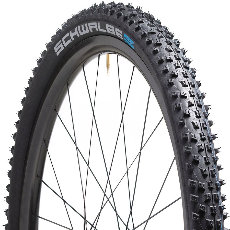 Learn MoreSchwalbe's Rocket Ron Addix Evolution 29in Tire is the ideal all-rounder for conquering racetracks. It features a balanced proportion between sleek open areas and sturdy lugs for high rolling characteristics. Plus, self-cleaning properties. Rocket Ron combines speed and cornering control for our cross-country endeavors, and Schwalbe's tubeless technology means we can run lower tire pressures as needed.