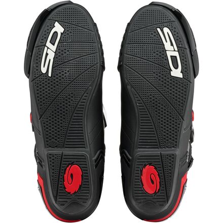 - The two-piece sole is constructed of a rugged polyurethane and rubber blend. It features a removable insert in front of the arch area where most of the wear and tear normally occurs due to sharp metal brake pedals and shift levers. Another patented-exclusive Sidi feature'