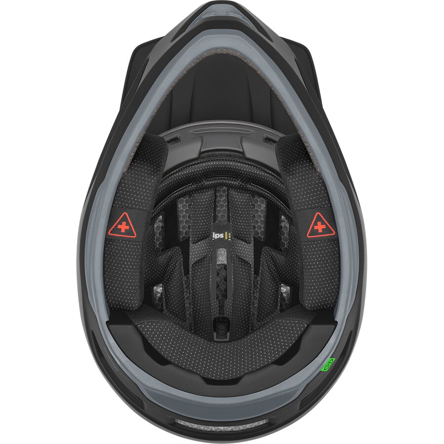 A large chin bar vent and precision-placed brow vents channel air through the helmet, exiting out a sleek rear exhaust system for fog-free goggles and a cool head. The removable cheek pads ensure quick, safe removal after a crash, and the Ionic+ liner keeps odor at bay.