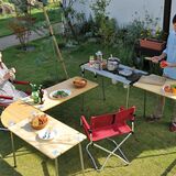 Use the legs to create a comfortable cooking and dining space.