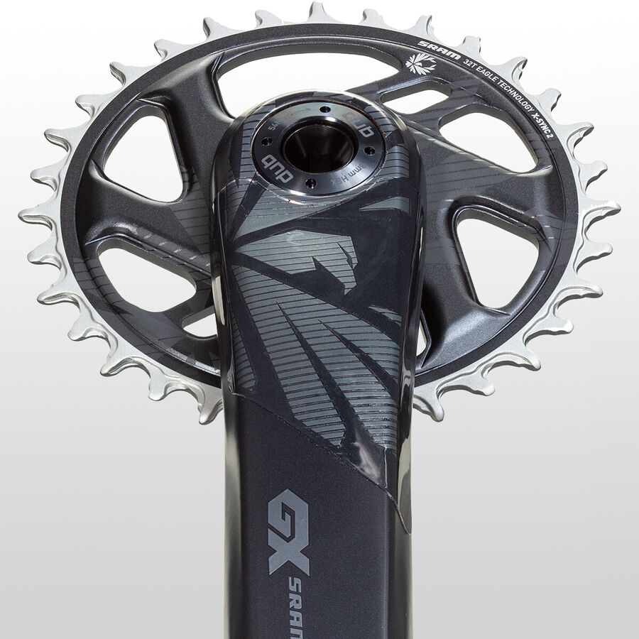 Learn MoreSRAMs GX Eagle DUB Carbon Boost Crankset takes the best of the trickledown Eagle technology from the alloy GX Eagle and moves to a carbon chassis for higher performance and a clear image. Starting with the direct-mount alloy chainring the crankarms are carbon the X-SYNC 2 tooth profile focuses on maximizing chain retention for a more continuous pedaling experience, and one that doesnt leave you fiddling with a dropped chain in every rough section. In addition to better chain control, the X-SYNC 2 design keeps friction lower while also removing mud and gunk build up on sloppier, peanut butter dirt rides.