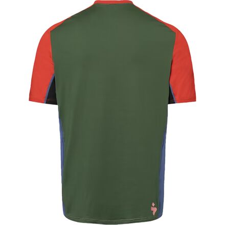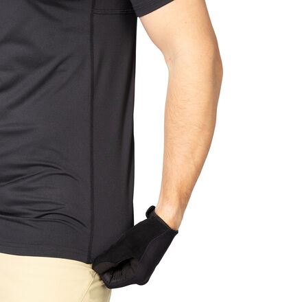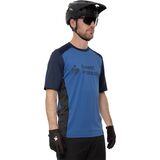 The four-way stretch fabric provides freedom of movement while pedaling and maneuvering through technical sections of trail. Moisture-wicking, quick-drying materials help regulate comfort during long climbs, while strategically placed mesh panels under the arms improve airflow where riders generate the most heat. Flatlock seams reduce friction during long hours in the saddle, and the jerseys regular fit creates a comfortable balance between performance and everyday wearability.