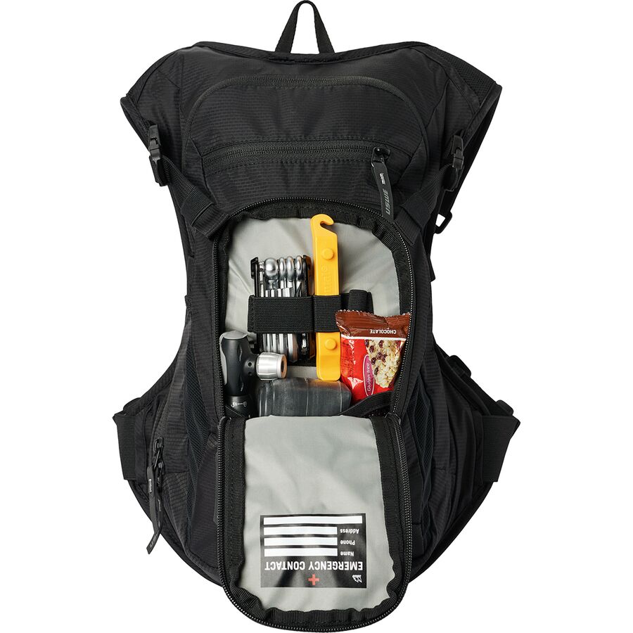 Designed with the No Dancing Monkey 1.2 harness, this pack eliminates bounce while offering full freedom of movement. A 3L Elite hydration bladder ensures we stay fueled for the ride, while the Plug-n-Play coupling makes refills quick and easy. The pack's 9L storage capacity includes a zippered organizer for tools, snacks, and ride essentials, plus external attachment straps for securing a jacket or armor. Ventilated shoulder straps and an air-vented back panel keep us cool, even when the ride heats up. Whether its a big day in the mountains or an after-work lap, this pack keeps everything dialed in.