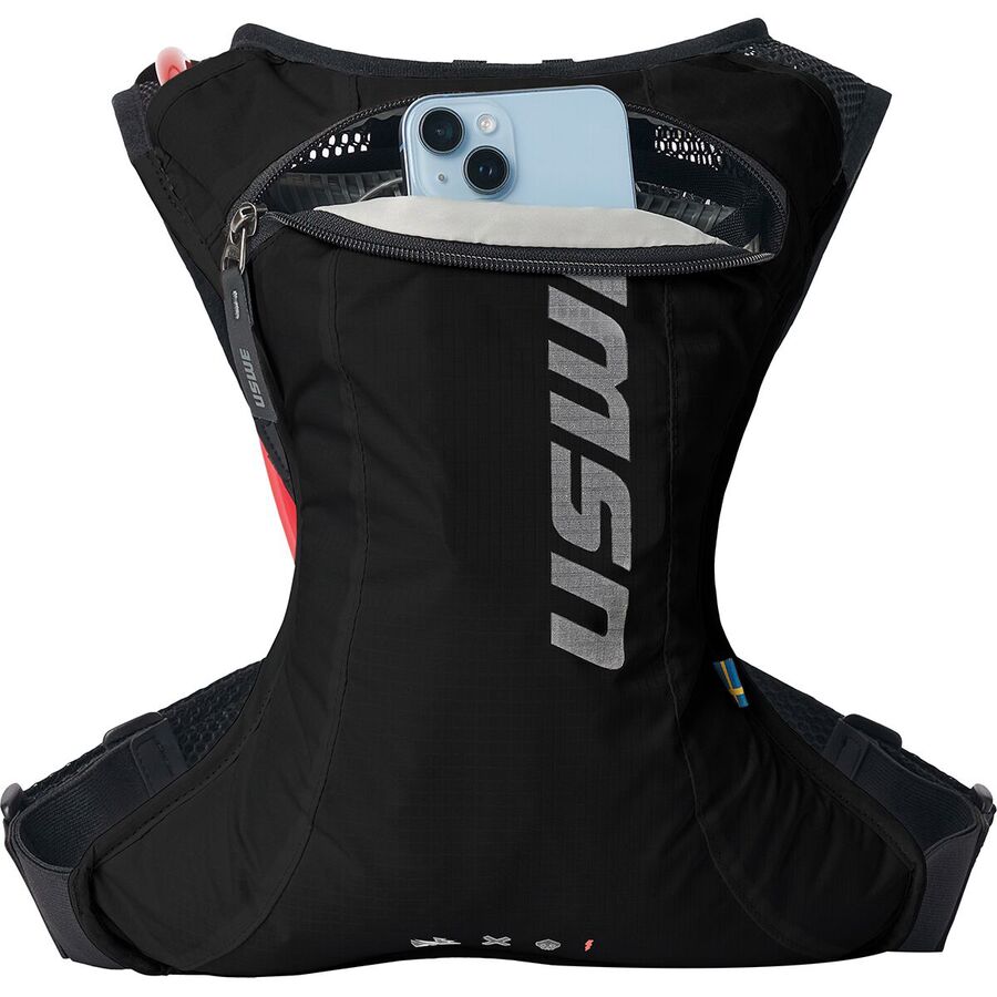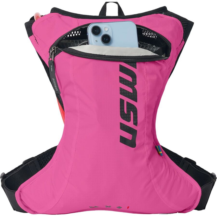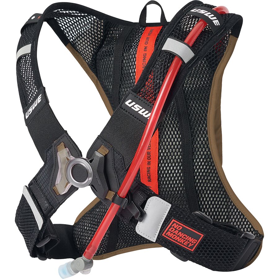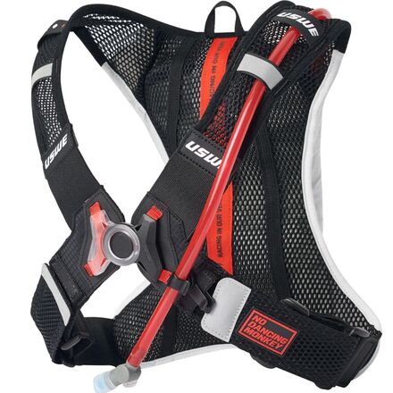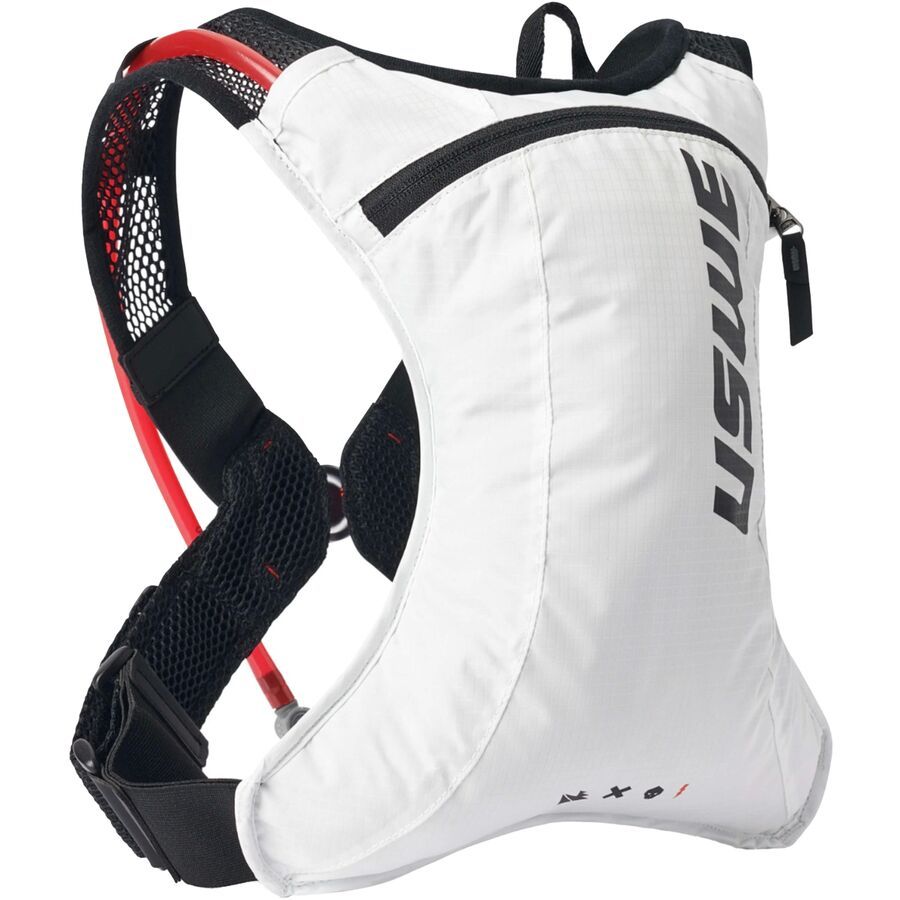 Learn MoreThe USWE Race 2.0 Hydration Pack is a super lightweight hydration bag meant for cross-country and trail riding and one of the most efficient ways to tote around water on longer rides. The main fabric of the Race 2.0 Hydration Pack is made of recycled polyester for eco-friendly construction, and the back panel and the harness system are made out of polyester mesh for airflow. USWE's No Dancing Monkey 1.0 Pro harness system ensures a bounce-free fit that stays stable on our back, provides optimal aerodynamics, and weighs in at a measly half-pound weight. The included 2-liter Elite hydration system has a magnetic hose attachment at our chest for easy hydration on the go, while the zippered compartment on the rear of the bag stores the hydration bladder and has a small pocket for our phone and keys.