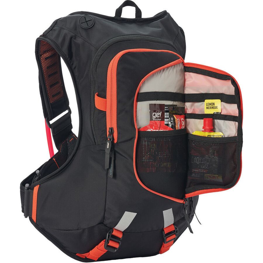 The hydro backpack comes equipped with a 3.0 liter / 100 ounce Elite hydration bladder with a slider opening for easy cleaning / drying and to make it possible to put ice inside the bladder during hot conditions. The bladder is also equipped with a smooth Plug-n-Play tube coupling for extra secure and easy handling. The sports backpack comes with two tube clips for secure attachment of the drink tube, and quick access when you're riding. If you're using the USWE Helmet Handsfree Kit (kit NOT included with the pack), just use the tube port. Can't get any easier than that!